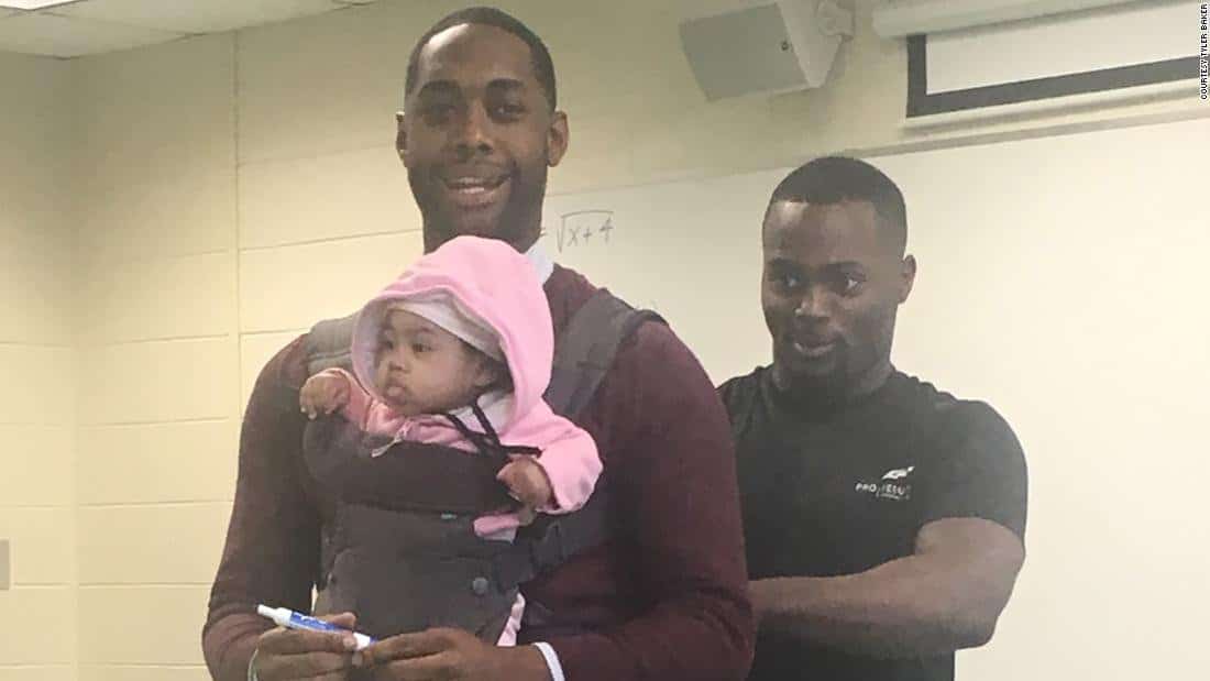 La vie d’un parent n’est jamais facile. Et c’est encore plus pénible quand on n’a personne à qui confier son enfant pour aller mener ses activités. Wayne Hayer en a fait l’expérience. Le vendredi 1er mars, le jeune homme est arrivé en cours avec sa fille Assata. Ce fut finalement le professeur de mathématiques Nathan Alexander qui a décidé de s’occuper de l’enfant, afin que le papa puisse « prendre des notes plus aisément ». La photographie de cette image très touchante a fini par faire le tour de la toile.